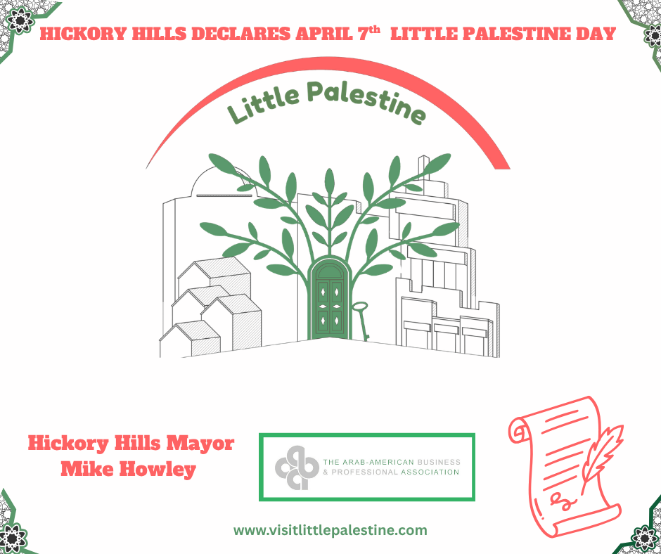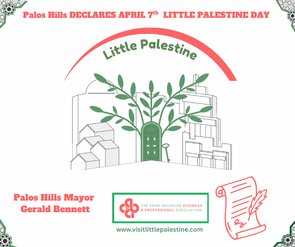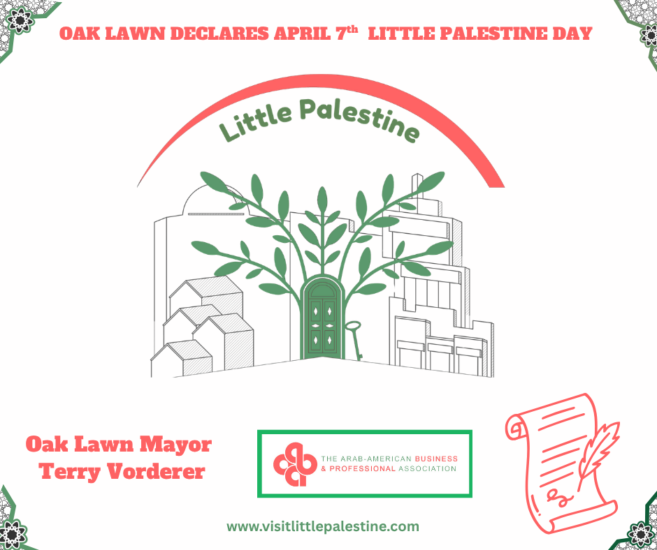 The Arab-American Business and Professional Association proudly announces the official recognition of the Little Palestine Business District in the Village of Bridgeview, marking a historic milestone for a community that has been built over generations.