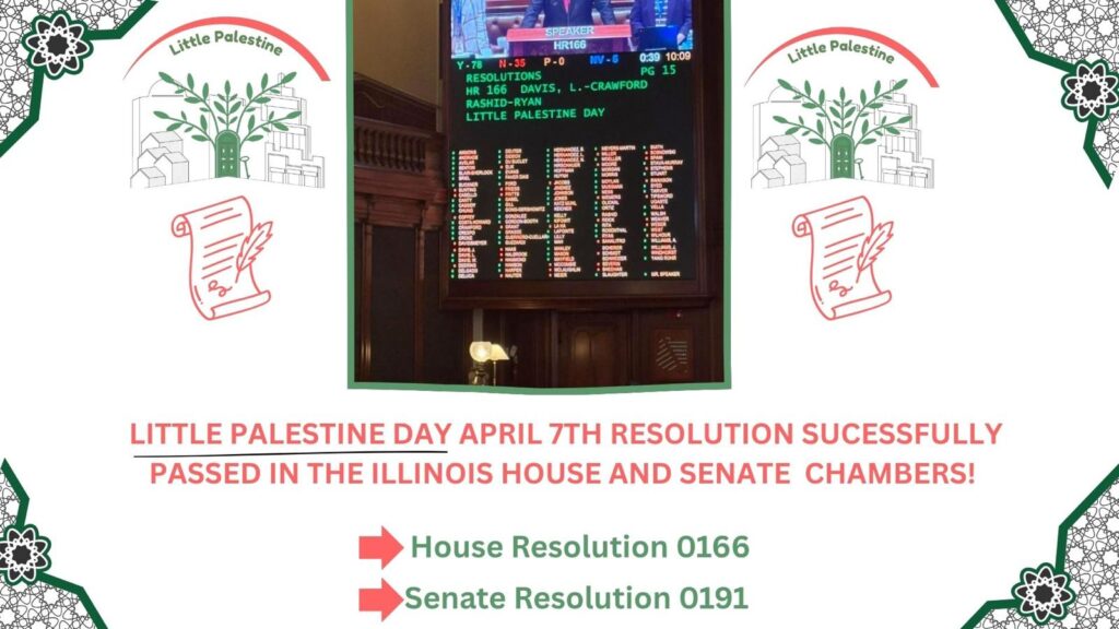 That work reached the state level with the official passage of House Resolution 0166 and Senate Resolution 0191, formally establishing April 7 as Little Palestine Day and recognizing the impact of more than 200 Arab-owned businesses across a concentrated four-mile stretch in the southwest region of Cook County.